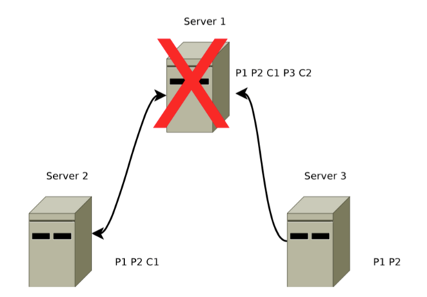 如图,消息 1 的 COMMIT命令C1在 Server1(Leader)和 Server2(Follower)上执行了,但是在Server3收到消息C1之前Server1便挂了,客户端很可能已经收到消息1已经成功执行的回复,协议需要保证重新选主后,C1消息不会丢失。