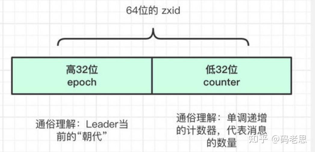 - Leader 接收到消息请求后,将消息赋予一个全局唯一的 64 位自增 id,叫做:zxid,通过 zxid 的大小比较即可实现因果有序这一特性。