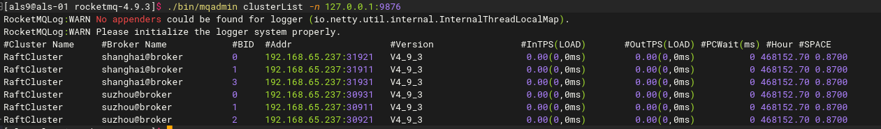 sh bin/mqadmin clusterList -n 127.0.0.1:9876