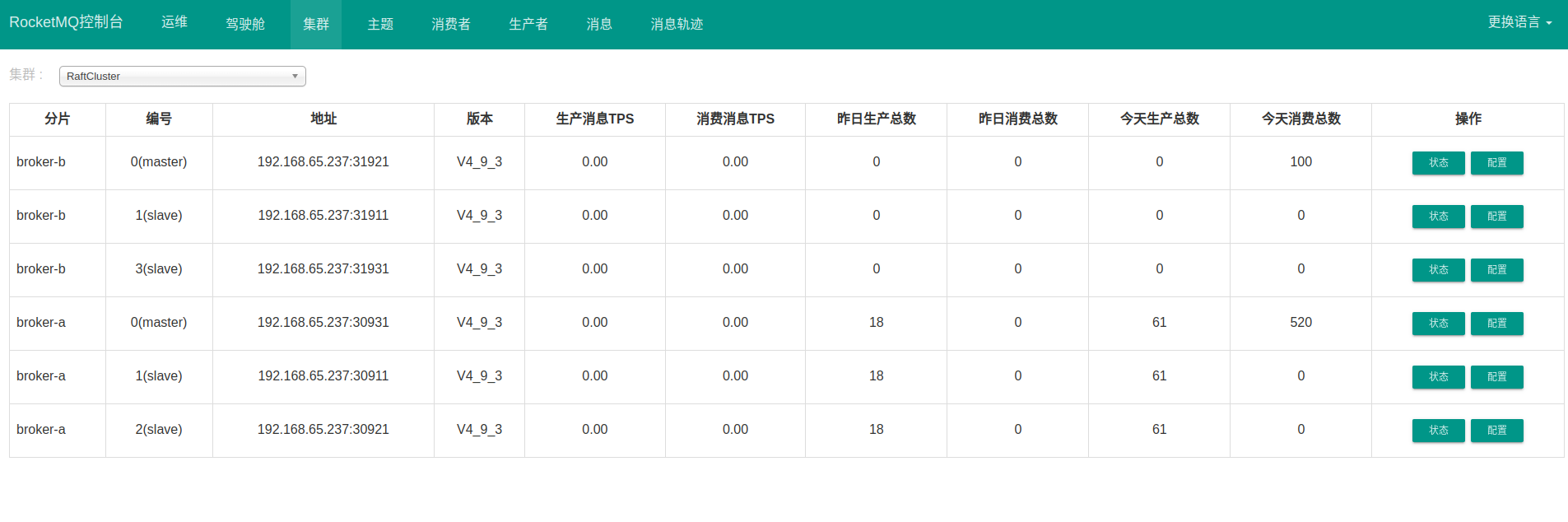 如果上面的步骤执行成功,可以通过 mqadmin 运维命令查看集群状态。